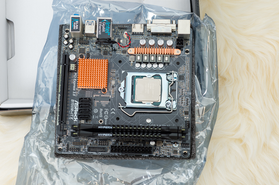 选择华擎B150M-ITX主板,作为标准的乞丐板清货特价只要399入手,用料和性能够用,3+1+1相供电还有VRM供电不用担心MOS管过热,原始BIOS支持支持6~7代酷睿,支持i5-7500没问题;现在通过魔改可以完美支持i3-8100。