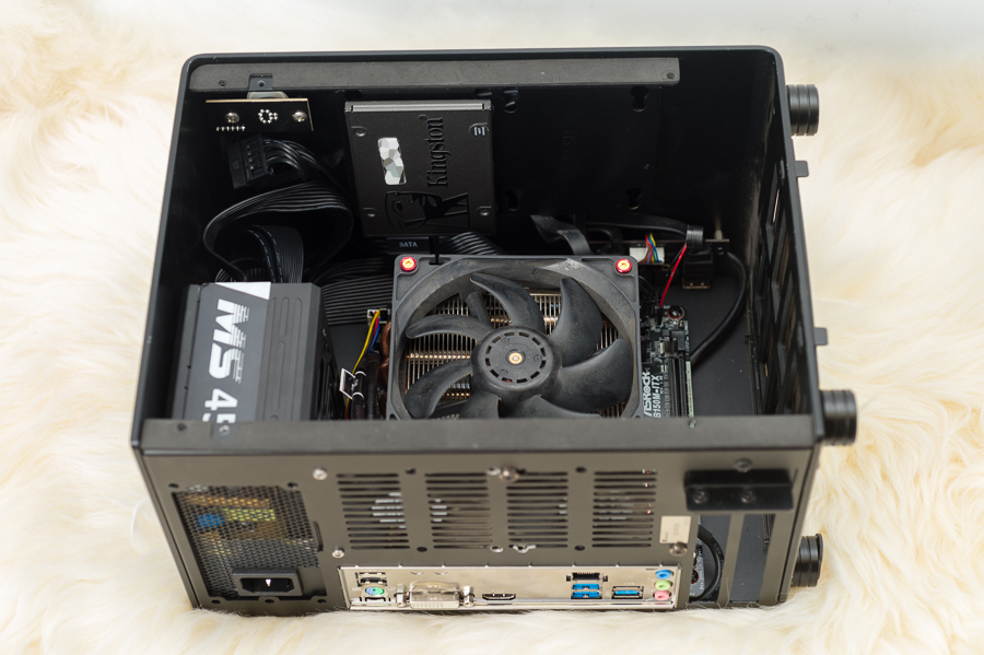 电源是新买的全汉FSP MS450全模组电源,全模组的好处就是在乔思伯U1 PLUS 那么小体积(10升)的ITX机箱内部,非常容易整理布线。