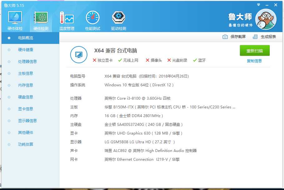 首先是群众们喜闻乐见的鲁大师。13万分,还不如淘宝2699的X58 6核心至强的吃鸡主机分数高,真是让人沮丧!