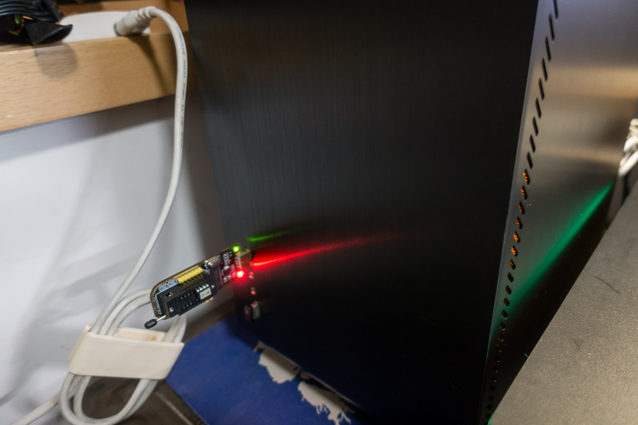 进行BIOS烧录中的编程器如图所示,必须使用另外一台电脑才能够进行魔改的BIOS烧录大计。