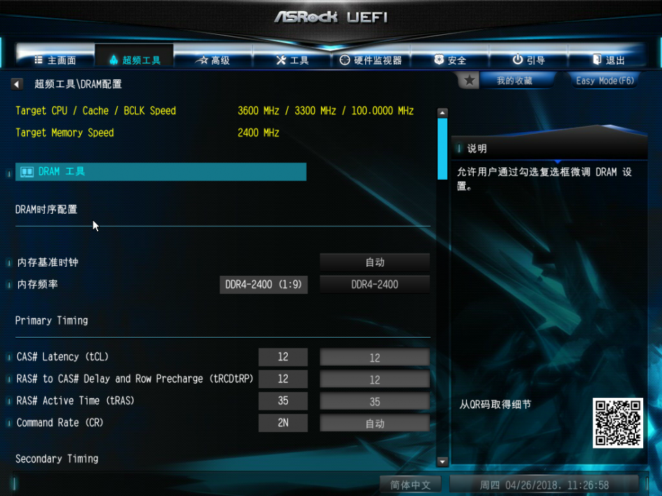 这款华擎B150M-ITX主板因为不支持X.M.P。所以需要手动调整内存频率为2400,然后手动将X.M.P参数填入Primary Timing也就是第一时序。X.M.P参数可以进入系统后用CPU-Z或者AIDA64软件读取查看。