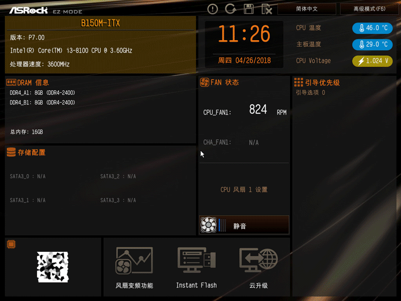 这次华擎B150M-ITX主板也超值了一把,自己动手刷个BIOS改一改,感觉翻身农奴把歌唱啊,立马单车变骆驼有没有?