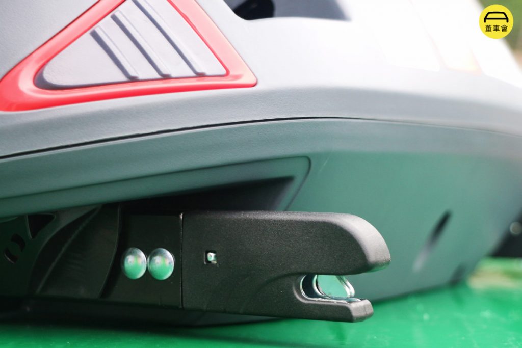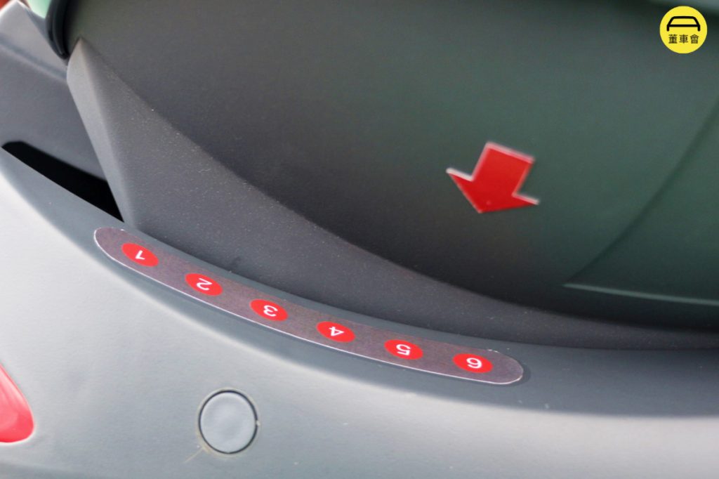 最主要的固定装置,还是 ISOFIX 接口,能支持90%以上的通用车型,其 ISOFIX 接口位于座椅底部,按住底座左右两侧的红色标识区域即可伸长 ISOFIX 接口,收回同样需要按住红色按键。在拆卸安全座椅时,按住 ISOFIX 接口内侧的红色按键(二道解锁按键)即可。
