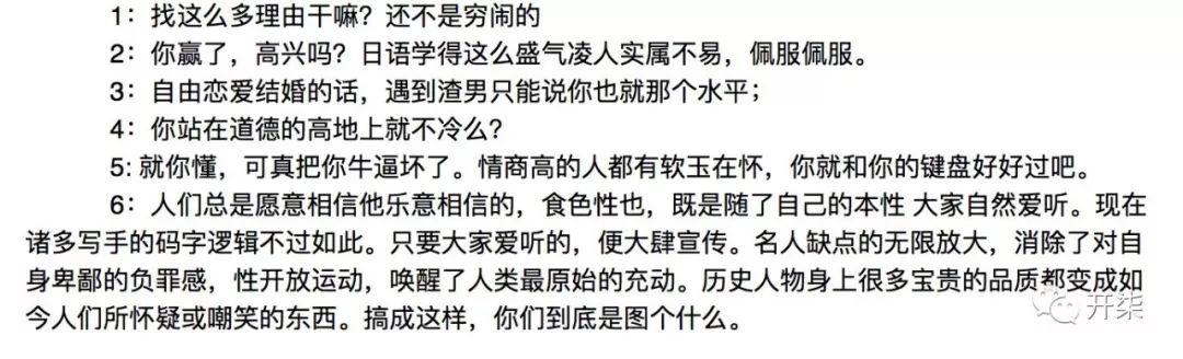 同时,知乎的AI算法针对的重点也有辱骂、贴标签以及歧视的互动。比如,“谁给你的勇气说这话”、“请看重点”等等花样繁多的攻击体,还有更隐蔽的贴标签言论,比如“你对自己这副舌长嘴素质低的样子感觉也很良好啊”。