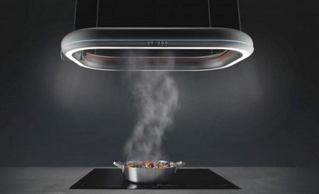 整个油烟机就像一个环形UFO,由四根金属线吊装在燃气灶上方,美丽的LED灯条可以提供充分的照明。这种颠覆传统的设计,可以给未来的厨具提供更丰富的设计方向。相信普及指日可待!