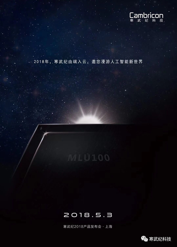 品途商业评论(ID:pintu360)5月3日,智能芯片公司寒武纪科技在上海举办了 2018 产品发布会,正式发布了多个最新一代终端 IP 产品——采用 7nm 工艺的终端芯片 Cambricon 1M、首款云端智能芯片 MLU100 及搭载了 MLU100 的云端智能处理计算卡,开启云端战略,构建端-云一体化的AI体系。