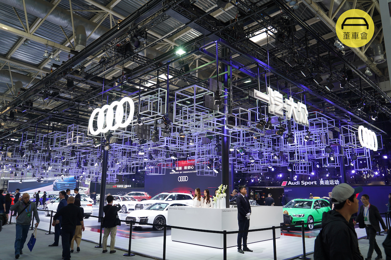 作为「BBA」品牌的其中一员,奥迪在这次车展上的布置除了突显出名厂豪气外,在装修布置上也相当有意思。