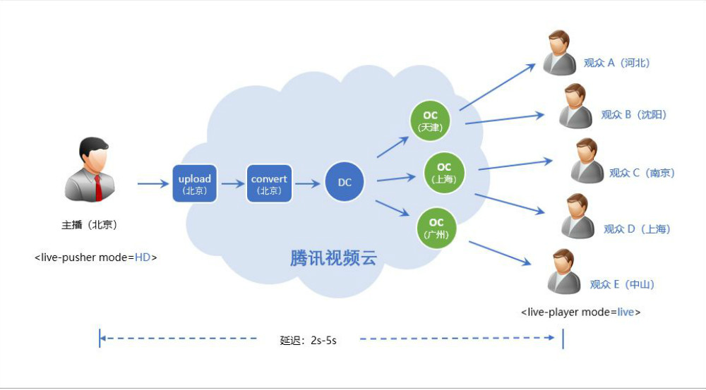 但在线直播方案只能应用于解决单向音视频问题,因为它有个明显的问题,就是延时一般都是在 2秒 – 5秒左右,这是使用 标签配合腾讯云视频云可以达到的效果。如果是
