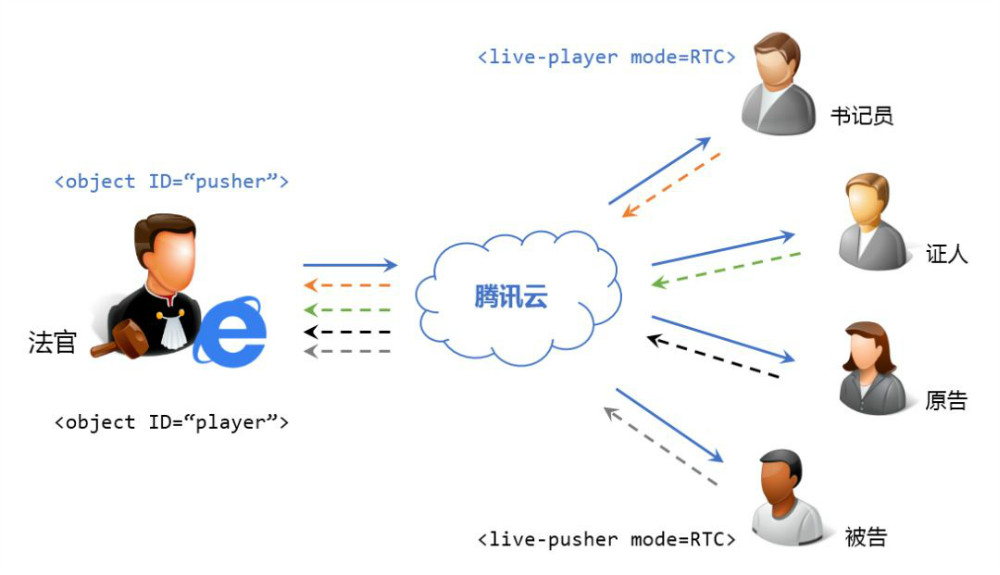 在线直播是一个非常经典的单向音视频场景,您只需要简单的将两个标签组合在一起即可, 负责将本地画面和声音实时上传到腾讯云, 则负责从云端实时拉取音视频流。