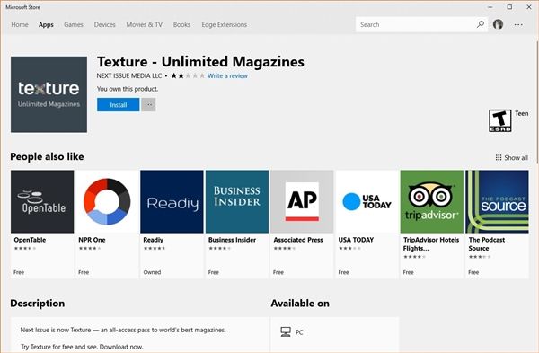 原标题:苹果买断阅读软件Texture:Win10版惨遭下架