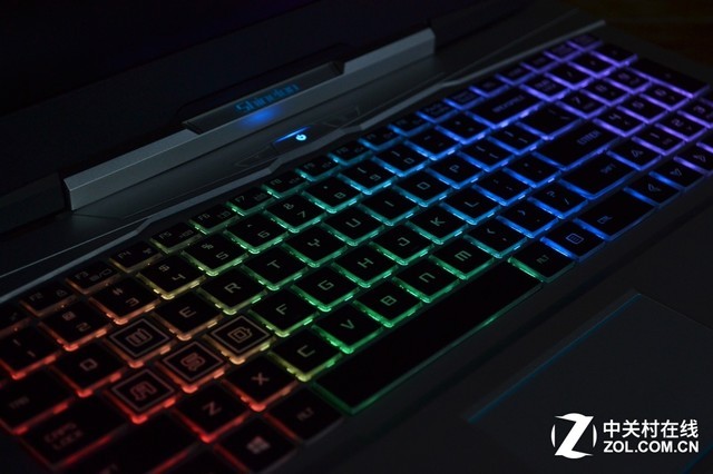 全尺寸、RGB全彩背光键盘,死去背光键盘支持约1677万色调节,共有6种灯效模式。可自定义五种等效配置,开机欢迎模式与背光模式等消息自由组合,共36种组合方式。