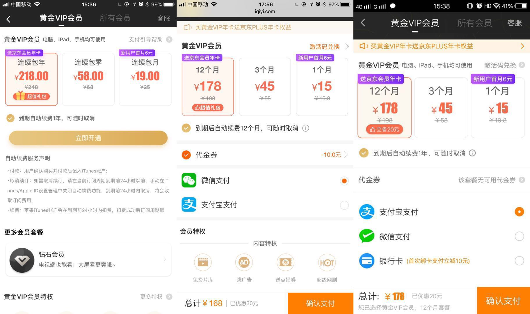 同样的账户, 在 iPhone 上购买爱奇艺的视频会员,包年价格是 218 元;而在 Android 手机上购买,却只要 178 元。