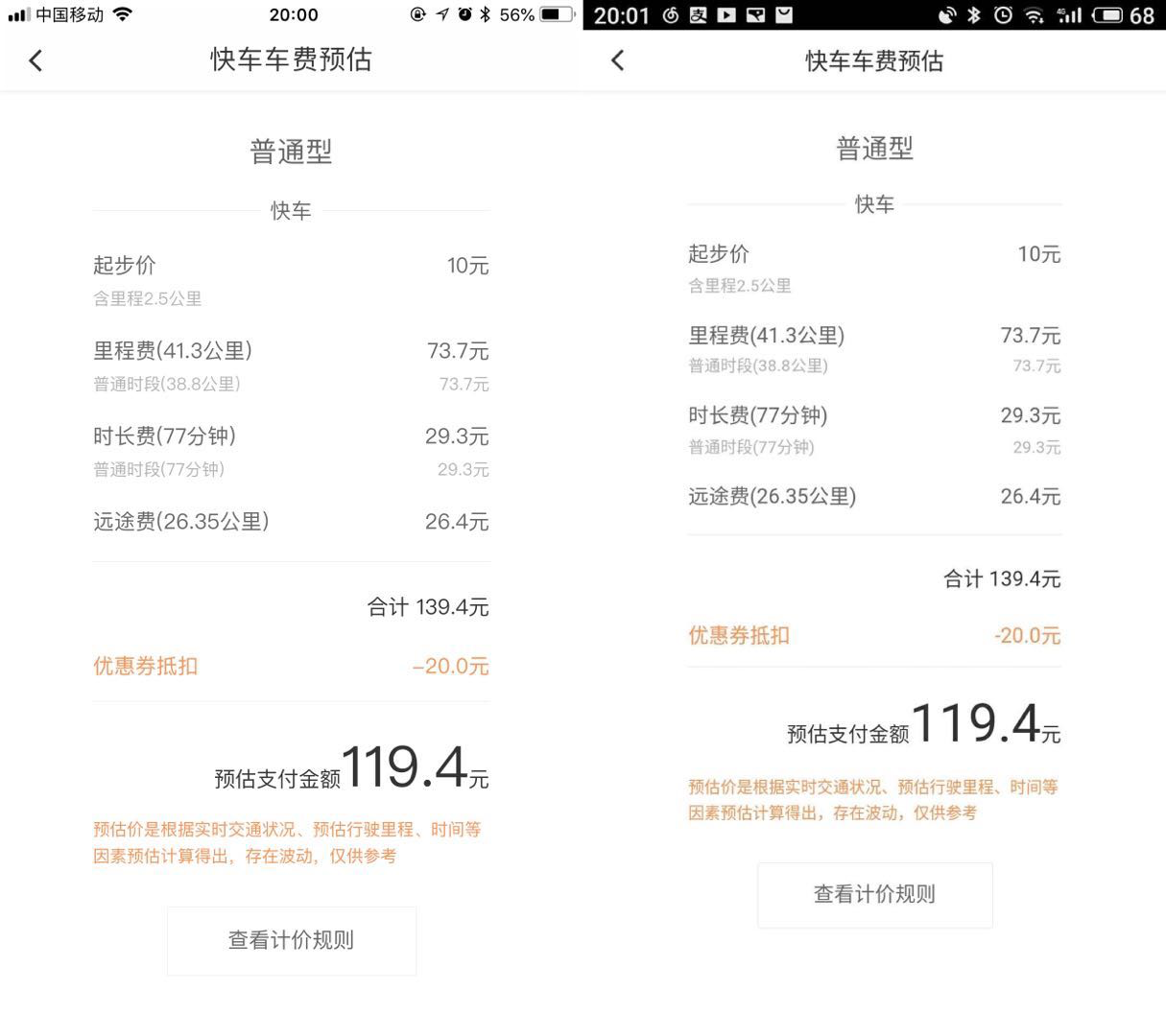 - 每个行程都是根据乘客定位、实时路况、预估行驶里程、时长估算的