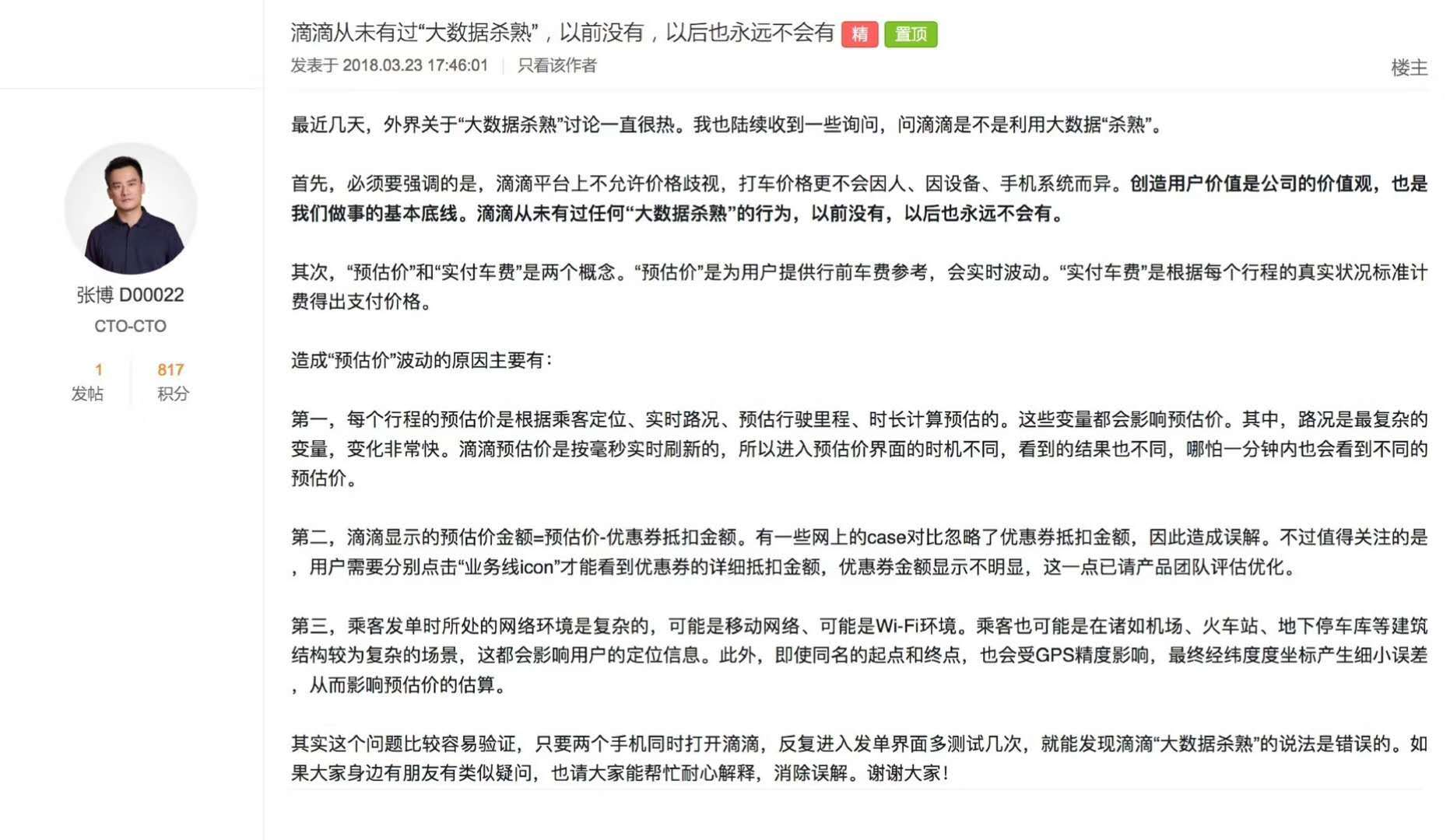 滴滴 CTO 张博曾在公司内网表示: