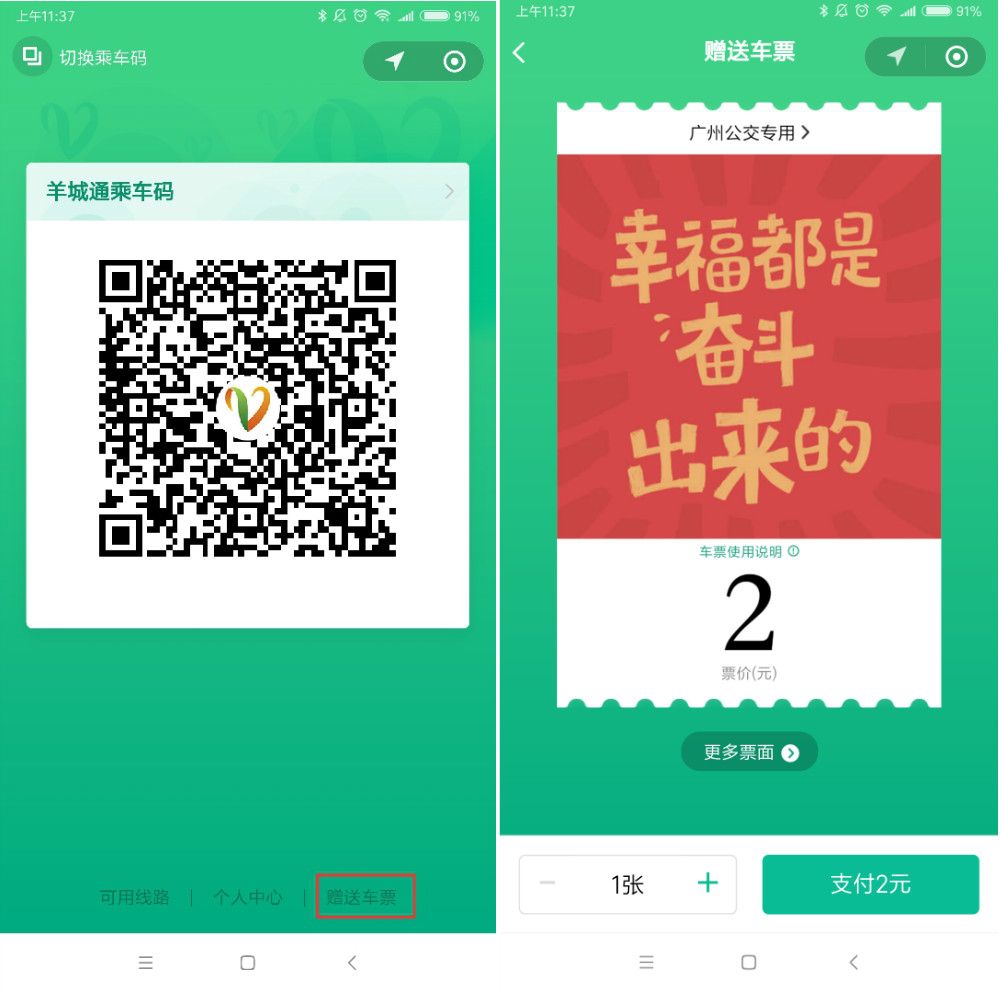 打开「腾讯乘车码」,知晓君发现这个平常常用的小程序竟然上线了一个新功能——赠送车票。