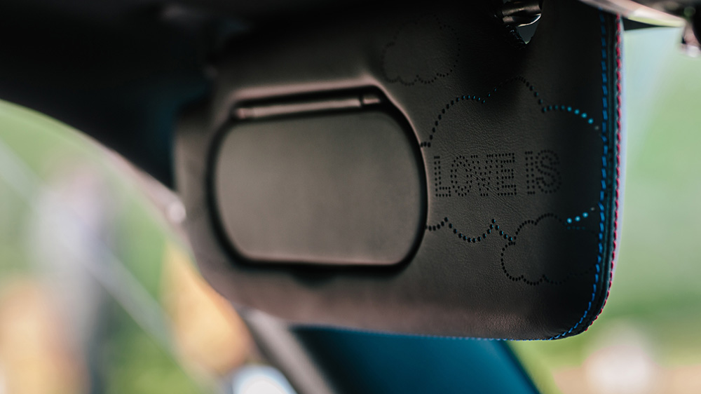 内饰部分,Mini 采用了一套「卫星灰」真皮内饰,还用 3D 打印技术制造了一些独特的部件。虽然是「皇室婚礼」限量版,Mini 并没有把哈里王子的「婚车」做得太正式庄重,而是走起了年轻时尚的路线。车门扶手上方的饰板采用了和车顶类似的涂装,融合了美国星条旗和英国国旗的设计元素。遮阳板的表层皮革改用了鲜艳的红蓝缝线,还增加了打孔的图案。最大的惊喜莫过于车门投影灯,打开车门时会在地上投射出圆形的「Just Married」徽标,羡煞旁人。