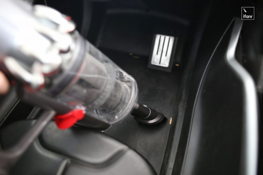 其他几个吸头使用方式显而易见,就不另外单独介绍了。几个吸头用下来,宽嘴吸头应该可以算是最高频常用的一个,不像地板吸头那么笨重,也能够覆盖到较大面积。武能赤膊上阵直接吸大颗粒残渣,文能推出软毛扫动细小碎屑,清理汽车内饰也很合适。