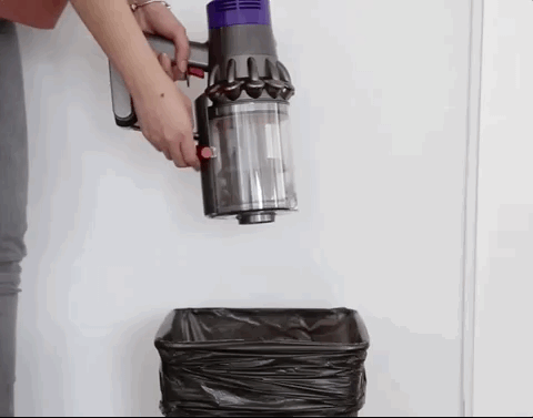 新设计为集尘筒带来的「瞄准发射」很顺手,使用者能够直接把尘筒伸入到垃圾桶之内,而无需担心尘土飞扬或是没有瞄准位置。手向前推动红色拉条,尘筒打开,灰尘落下;往后按尘筒盖,就算完成。从动图也能看出来,整个过程非常顺畅一气呵成。
