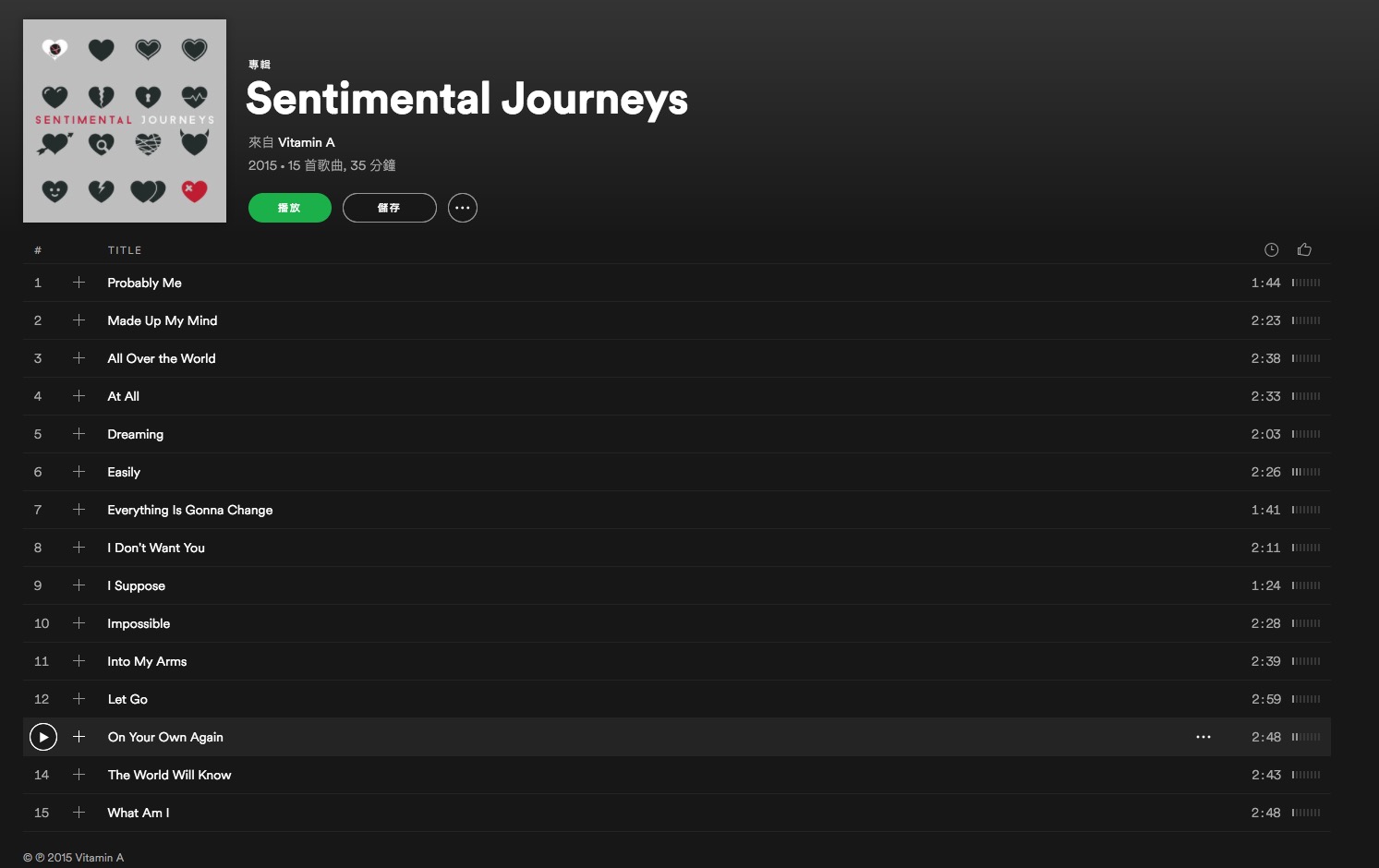 (歌手:Vitamin A | 专辑:《Sentimental Journeys》| 音源:16bit 44.1kHz FLAC)