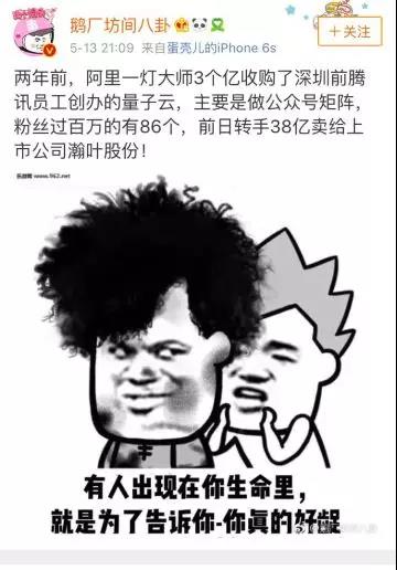 但是即便不去讨论量子云旗下粉丝数量的的真实性以及质量,瀚叶股份作为一家原国内大型规模的新型农药、兽药生产企业,花巨资去收购隶属于文创产业的微信公众号,其中之用意耐人寻味。