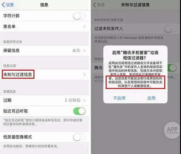 不过,不建议启用短信过滤功能,因为某些未知联系人发送的短信可能包含验证码或个人敏感信息等,将识别权限交给第三方应用显然不安全。