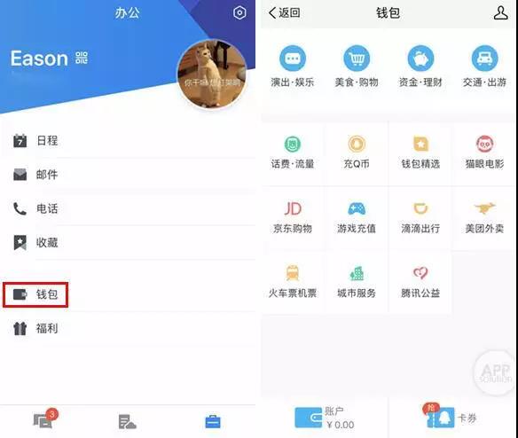 TIM 还有一个钱包功能,有很多日常生活服务,像外卖、电影、出行、充值等,还是蛮实用的。