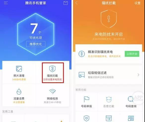 点击「骚扰拦截」,可以对来电和短信进行识别。