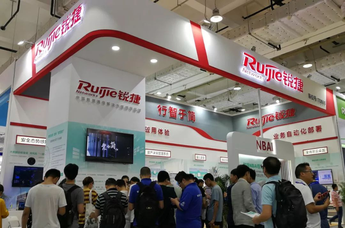 图1:在中国卫生信息技术大会现场,锐捷展台吸引众多参会者驻足交流