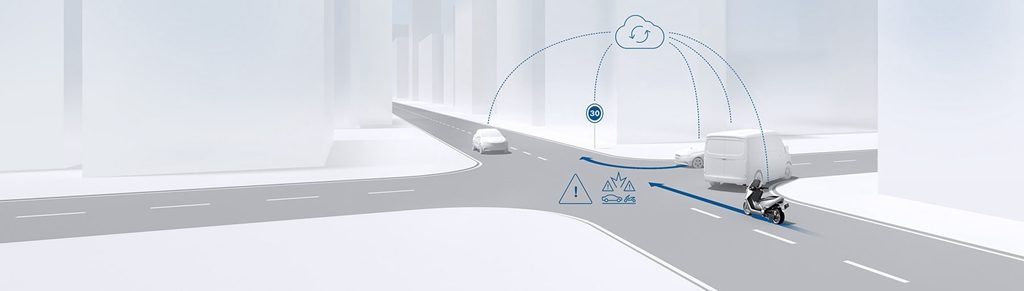 但无论是视觉,还是雷达,都不能避免诸如车辆遮挡的情况,譬如从一辆卡车背后可能钻出来的小轿车,针对未来,博世希望 Bike-to-vehicle communication (B2V)系统能够有更好的普及,摩托车和车辆之间会有直接的网络通信,摩托车对于环境的了解将比你更熟悉。