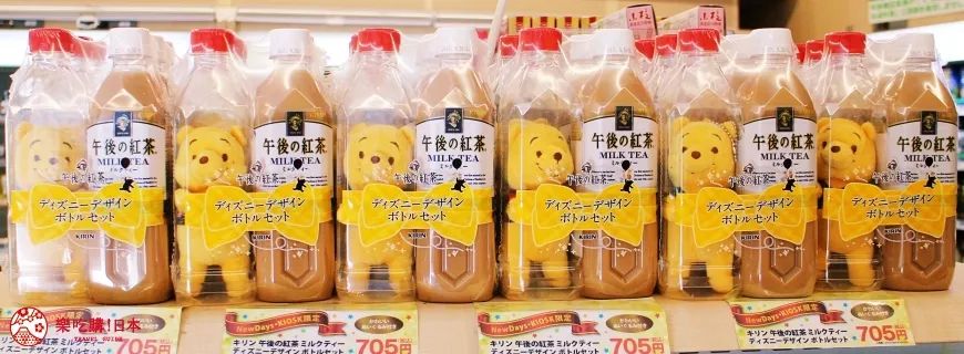 图片来源:fashion-press 可口可乐在日本的重要对手和合作伙伴麒麟饮料,它旗下的午后红茶最喜欢“搭配饮料卖公仔”。最受欢迎的,莫过于与迪士尼合作推出的米奇米妮、奇奇蒂蒂、小熊维尼。“公仔”的受欢迎程度远远高于饮料本身,不少购物网站上有该类“瓶装”公仔的拍卖。