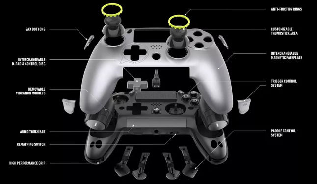 称为Scuf Vantage的新产品系列具有两个所谓的“sax”按钮,称为“独特的侧面安装右侧和左侧”按钮,位于手柄两侧,位于现有保险杠和触发按钮旁边。该手柄还具有新的音频控制选项,用于通过PS4触控杆调节音量和静音各种声源。 Sucf表示,Scuf Vantage还将配备一个可拆卸的面板,以便轻松定制拇指杆和其他美学选项。