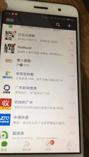 还有一个骚操作是 A 君在试验安卓机时发现的,那就是单击「微信」,消息界面马上回到顶部。
