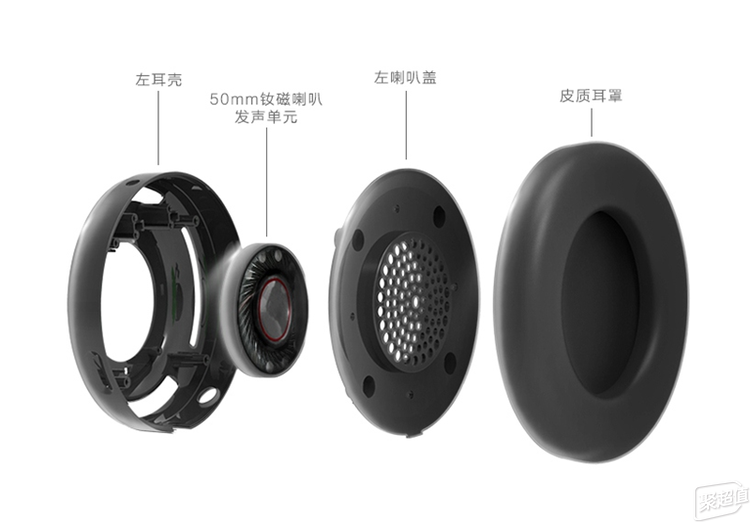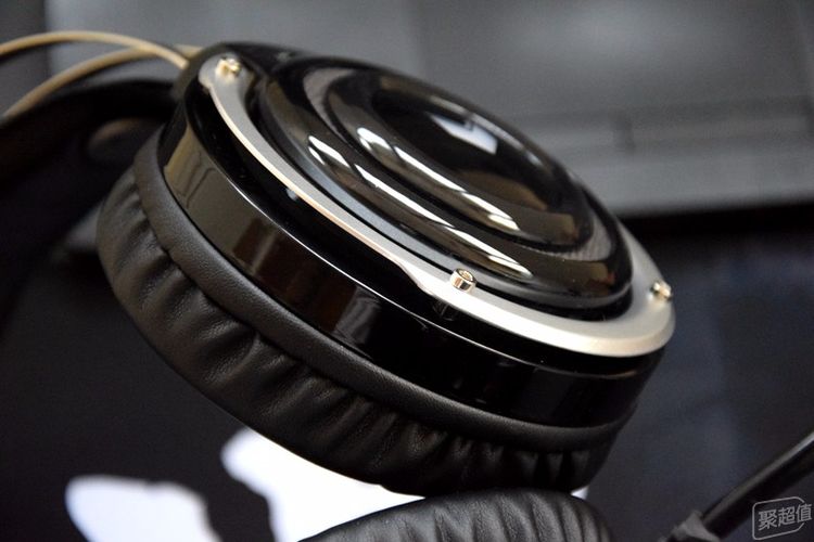 耳机直径50mm的大单元,配上仿皮质的耳罩,内部填充海绵,很柔软,佩戴起来可以完全包裹住耳朵也比较舒适。