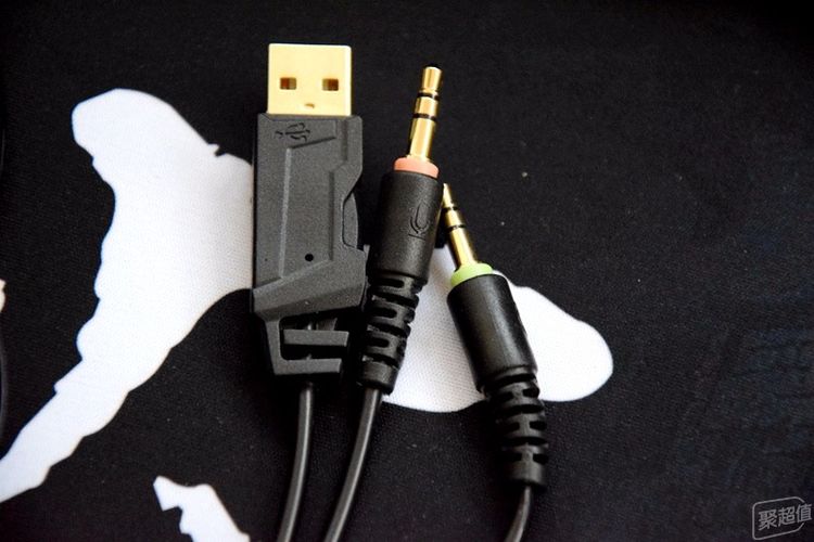 线材部分也设计在了左边的耳机单元侧,橡胶材质防水性比较好,长度达到了2.2m,足够日常所需,镀金USB接口以及标准的3.5mm SPK输入接口、3.5mm MIC输出接口三合一,可与电脑、Mac、平板等应用兼容。