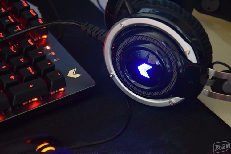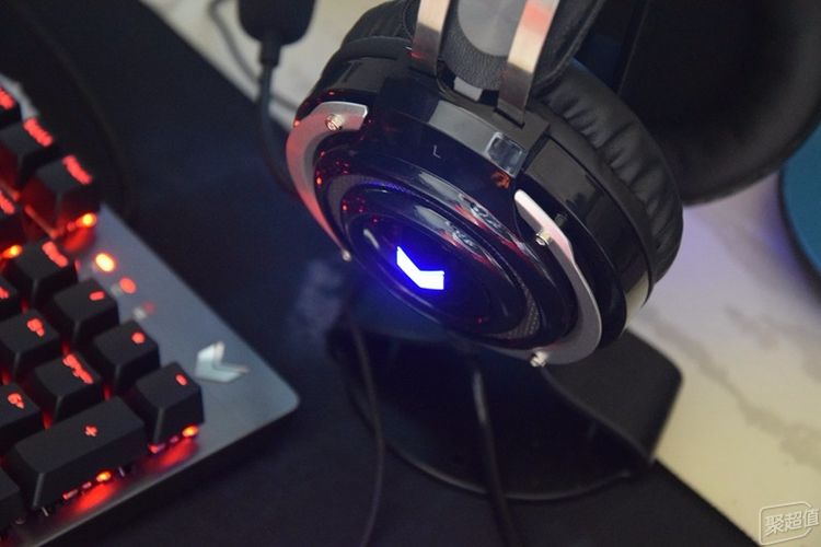插上USB接口后雷柏VH100S耳机的背光亮起。雷柏VH100S耳机的背光就是蓝光,灯光是无法关闭的,只有常亮一种,也没有其他颜色可调节。