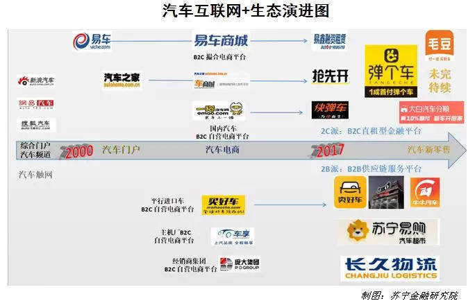 二是以致力于“车源服务”“供应链金融服务”“汽车仓储物流服务”“线下门店服务”(如苏宁汽车超市)“无人试车体验服务”等B端供应链服务的平台为代表,为非授权汽车流通渠道的B端客户(包括上述互联网汽车直租平台在内,以及二网经销商等)全面赋能,帮助这些相对弱势的市场主体走上汽车新零售之路,成为传统授权销售体系的有力补充。