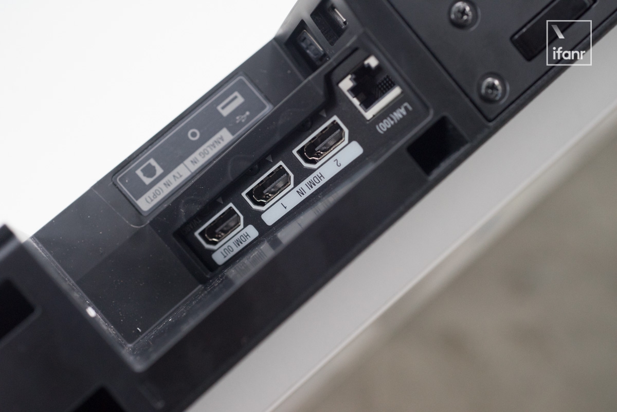 和之前一样,索尼把 HT-Z9F 的接口都做到了机身后面,并做了一个较大的斜切开口。