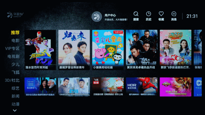 索尼A8F内置了华数的播控平台,还有搜狐视频和华数合作提供的“飞狐专区”,可以第一时间获得更多高清热播美剧资源。而且还有专门的4K HDR专区、杜比专区。