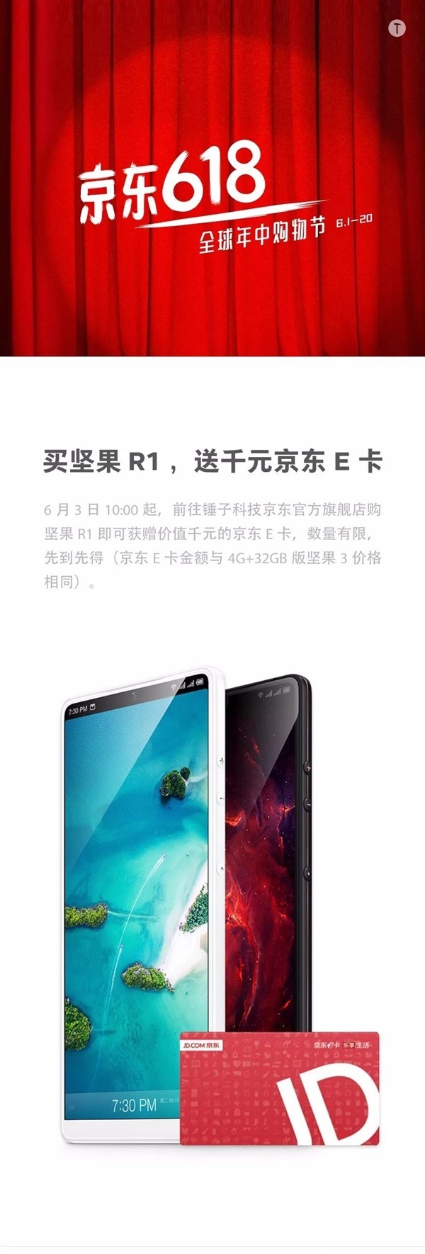 买坚果R1即送京东E卡1000元(图片来自锤子官网)