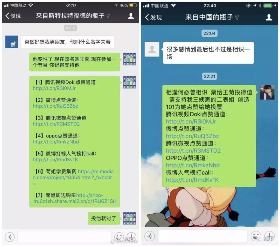 微信的漂流瓶功能,差点死掉,王菊的粉丝完美地拯救了它: