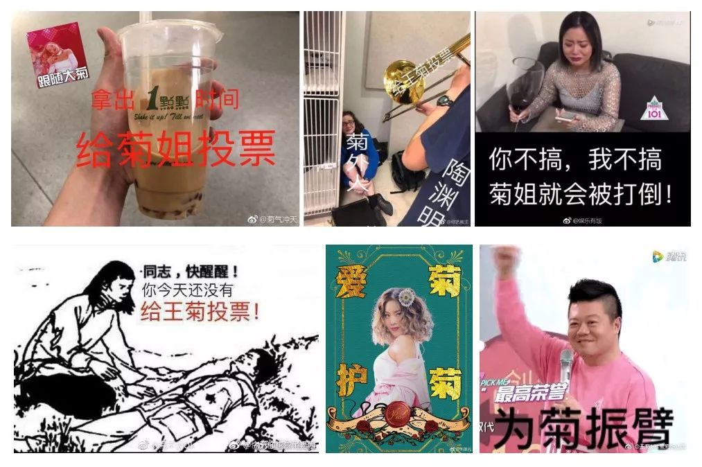 热度上来之后,微博营销号开始传播王菊的表情包和王菊的高颜值旧照,公众号平台也开始追热度,多篇10万+的文章相继出现。因为其在节目中个性突出、整体人设与其他选手相比别具一格的原因,让网友对其喜爱有加并疯狂追捧,由此王菊成为了《创造101》的一匹黑马选手。