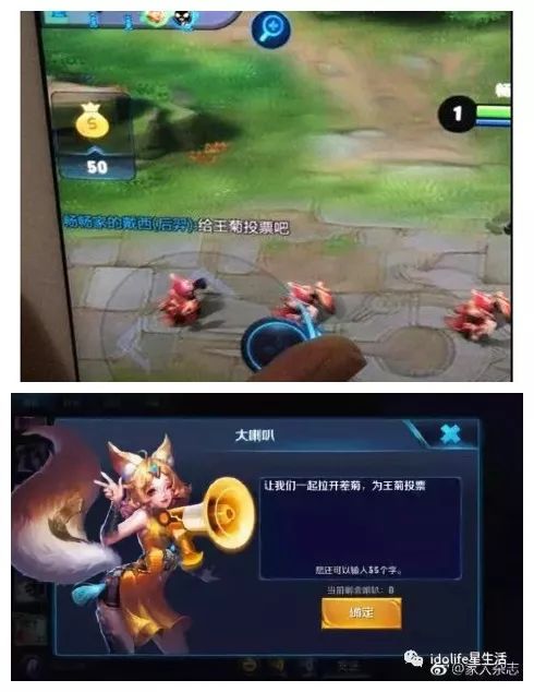 下班回到家打个游戏,上来就是“给王菊投票”的对话,还有人用喇叭道具对着全服务器喊:
