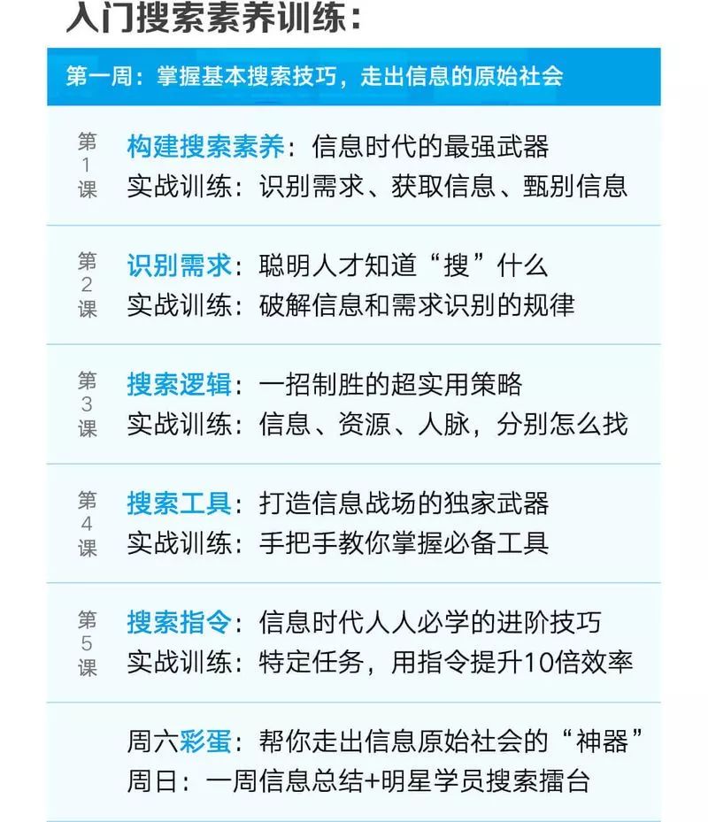现在,朱丹将她近10年时间中归纳总结的超级搜索技巧浓缩为21天精华课程《深度搜索内训营》,帮你从零掌握一套高效的搜索技巧。