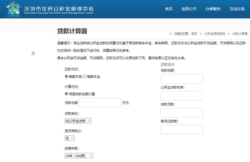 点开第一条,就是深圳市住房公积金管理中心的信息,官方的贷款计算器,帮你准确计算房贷金额!