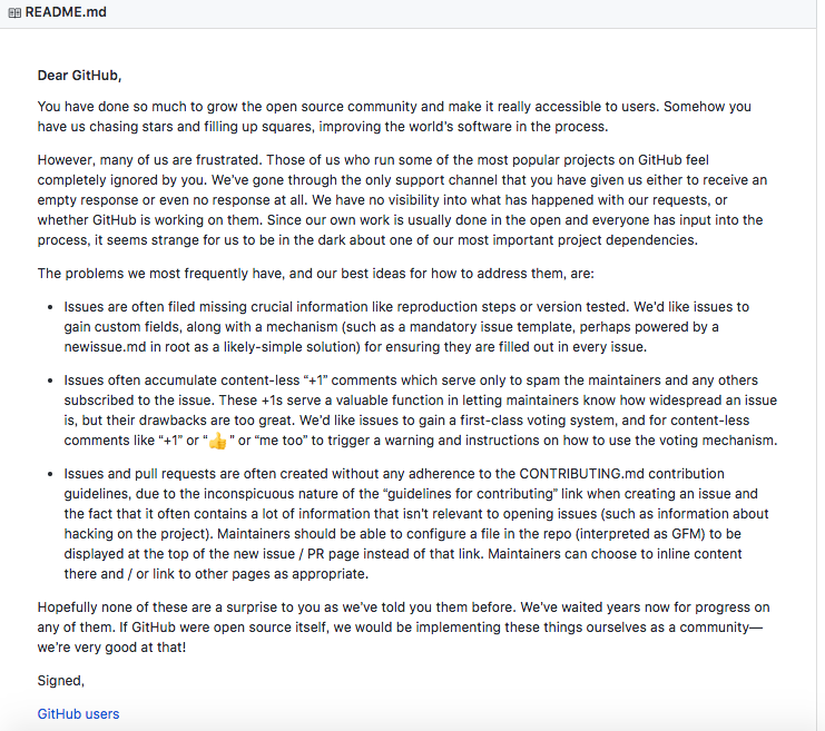 在洛杉矶工作的工程师 Parker 对 PingWest品玩表示,最近 Github 的用户体验越来越差,而公司似乎并没有花费足够精力在提高用户体验上。2016 年底有 Github 用户发表公开信,批评平台忽视创新,正在变得平庸。