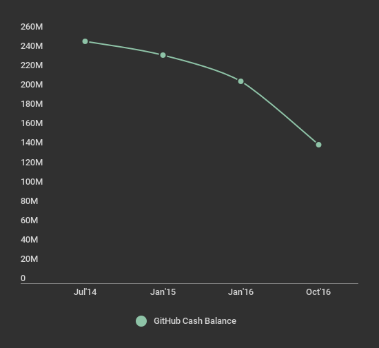 在 2016 年,彭博曾披露了 GitHub 当年的财务数据,显示这家公司的烧钱速度惊人。程序员 Moritz Plassnig 根据这些数据写了一篇博客,认为如果 Github 继续这样烧钱,将仅能维持 20 个月。