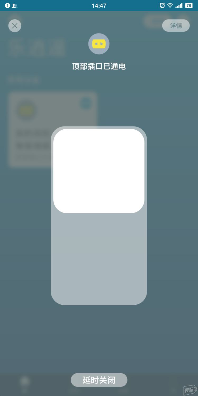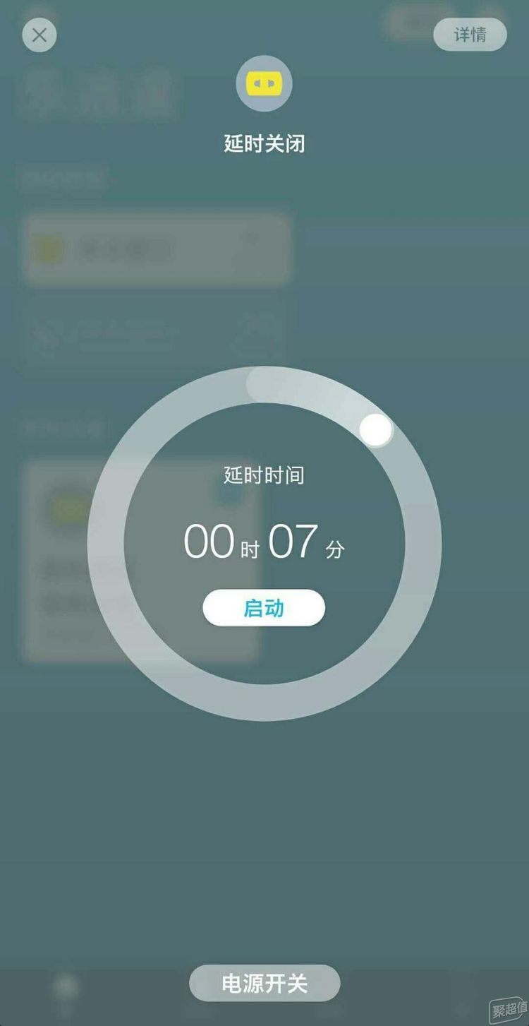 看到下面有“延时关闭”的按键,点击即可进入下面延时开关的界面。调整延时的设计比较巧妙,中间那个圆圈就是延时长短设定旋扭,初调第一圈时是慢速延时设定,旋完一整圈是延时1小时,貌似延时设计平淡无奇。旋走第二圈时神奇的事件发生了,延时的时间显示瞬间变快,原来第二圈为快速延时设定,旋半圈是延时4小时,旋完第二个整圈总共可以延时8小时。从快慢结合的延时旋扭来看,ROOME墙插精灵是花了心思做这个延时设计的。