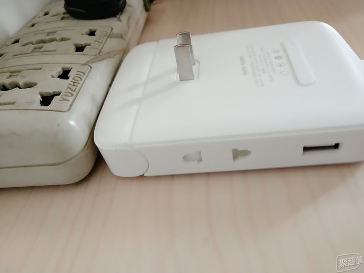 ROOME墙插精灵的侧面看,厚度仅1.6厘米,从下图可以看到,相比于一般的插座,墙插精灵厚度大约仅有一半左右。