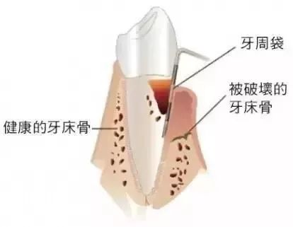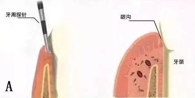 要注意的是探入时力量要轻,约为 20~25g。在牙周组织疏松、水肿的情况下,探诊的力度稍微大了可能都会使牙周袋加深,20~25g 的探诊压力既能发现病变又不会引起疼痛和损伤。如果牙周袋深度超过 3毫米、并且有附着丧失、牙槽骨吸收的迹象,这已经是牙周炎的症状。医生会根据探查的龈下结石分布情况,分区、分次进行刮治。