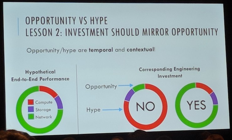 从工程角度看,什么样的研究投入方式是有效的?不是什么热就投入什么,投入程度应当和机会(也就是系统瓶颈)相对应。假如网络因素对系统瓶颈的贡献为 75%,那么就不应当在已经热门的计算领域投入 75%,而就应该在网络因素方面投入 75%。